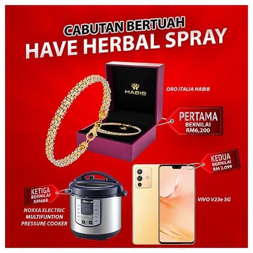 Sebotol HAVE Herbal Spray ni mengandungi 30ml dan boleh tahan 60 hari bergantung pada kekerapan penggunaan.